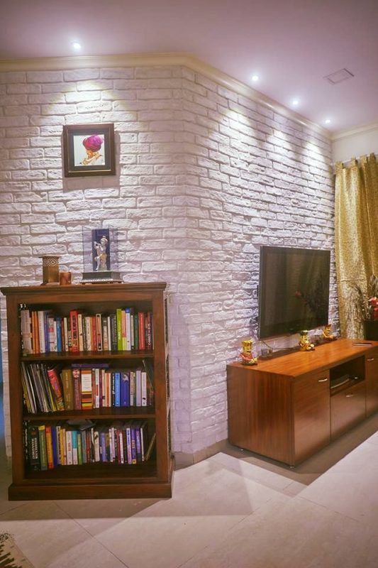 For the nature lovers, wooden laminates or stone cladding can be a safe haven. Also, an exposed brick wall works well to give it that rustic look!