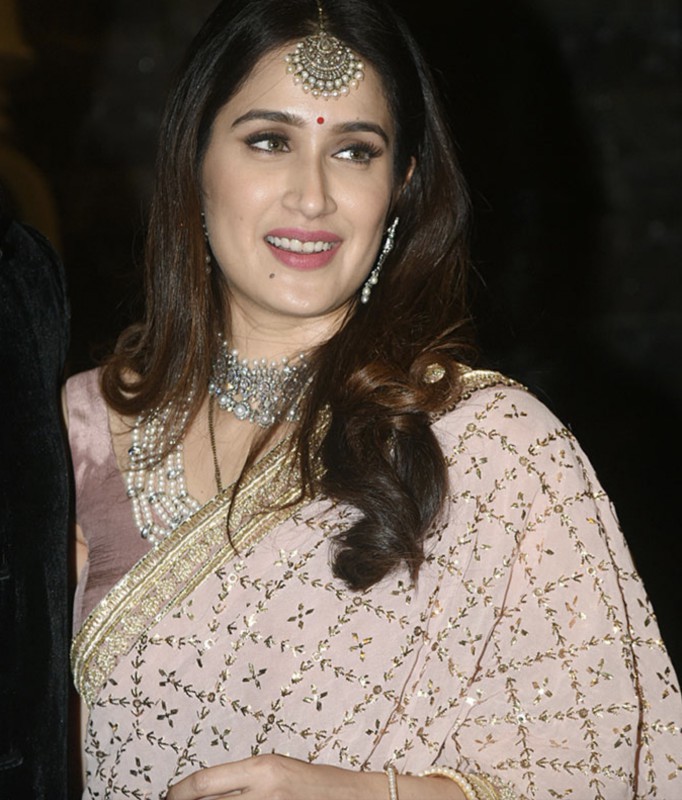 Sagarika wore a shaded pink lehenga saree with at her star-studded reception party. We love how she mixed gold and silver in her outfits. Her