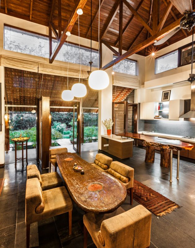 If you have a rectangular dining room, then this dining table design can be placed parallel to the longer wall for a dramatic flair. Place it by the window to make it even more appealing with a bright and airy feel. Place it in a corner that doesn’t receive too much traffic (of people!) for disturbance-free meals.