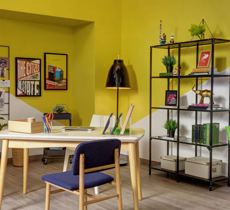 For a spirited and energetic ambience, paint the room in sunshine yellow or rust orange — basically bright, warm colours.