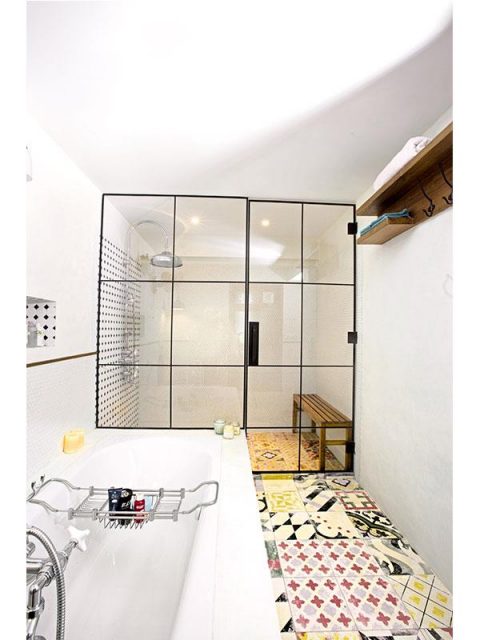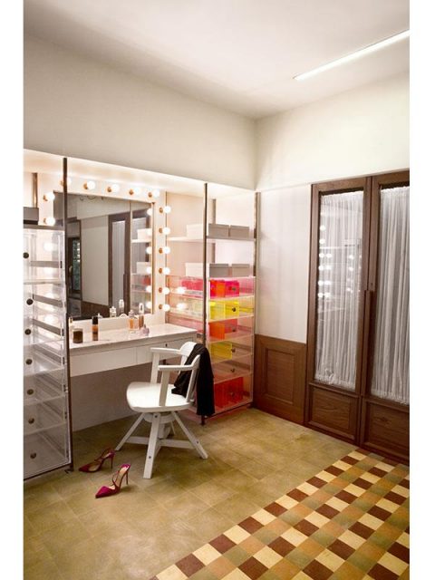 The experimentation of Moroccan patterned flooring against a white layout is pure genius! The bath space is one of the most striking areas of Alia Bhatt’s home. What an eye for details, must say! <3