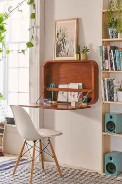 Even if space is a real constraint and you cannot find a spare corner in the house, do not give up on your dreams of having your own cute little home office. You can install a Murphy desk on any of the walls of the house. You can even have it attached to a closet. Murphy desks are completely foldable and literally disappear into the wall when folded. It doesn’t take up any floor space. You can keep it folded away and simply pull it down at night when there is less activity in the house. This is the ideal solution to have a home office in a small house.