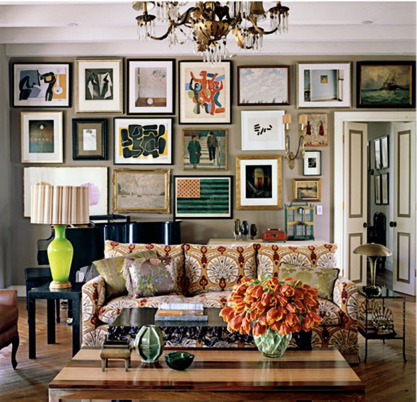 _ Leave little or no space between the images or art hung on the wall to stay true to this style.