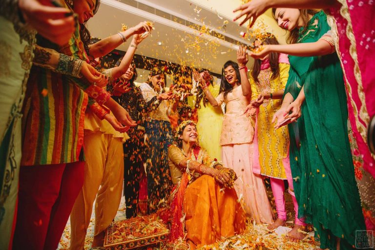 Yup, you don’t NEED to wear ethnic clothes only! Haldi is a relaxed, casual function most of the times, so you can wear pretty much anything you want 🙂 This is also a good idea if your Haldi is followed with a Pool Party at a destination wedding.