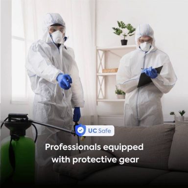 Our fully-trained & equipped service providers wear a full body protective suit — including gloves, face masks, safety goggles and shoe covers — while delivering the service to ensure your protection as well as their own.